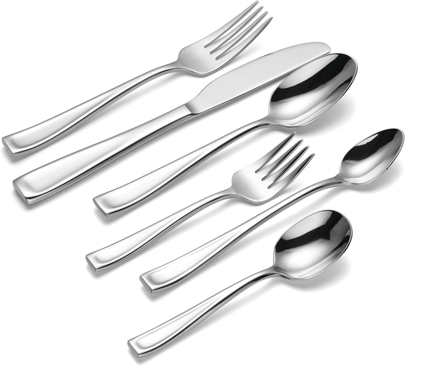 Contoured. Contemporary. Cool. This flatware pattern was designed with shape in mind. A recessed well along the bright handle commands your attention with its contrasting satin finish.