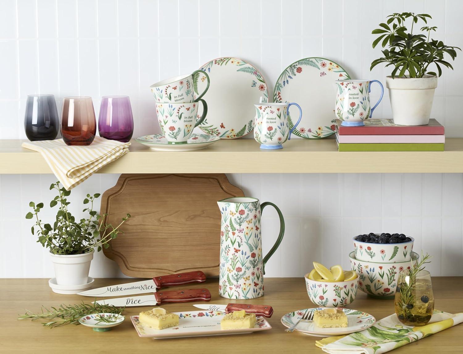 WHY IT'S SPECIAL: Inspired by the optimism of early spring, these First Blooms mugs renew the table with bright florals, happy butterflies, and heartwarming sentiments.